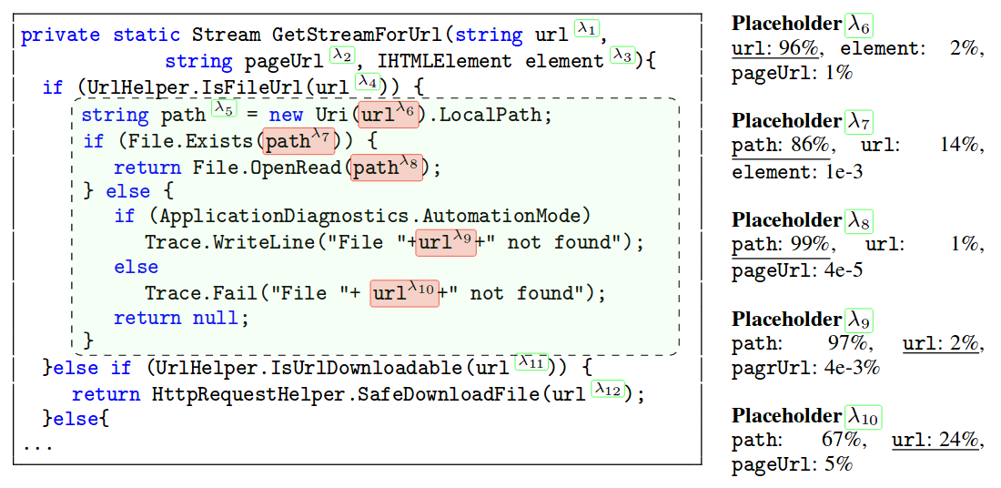Learning to Complete Code with Sketches. Daya Guo, Alexey Svyatkovskiy, Jian Yin, Nan Duan, Marc Brockschmidt, Miltiadis Allamanis. ICLR 2022. TLDR: Automatically generate (code) sketches, placing holes where ambiguity prevents us predicting terminal tokens. |