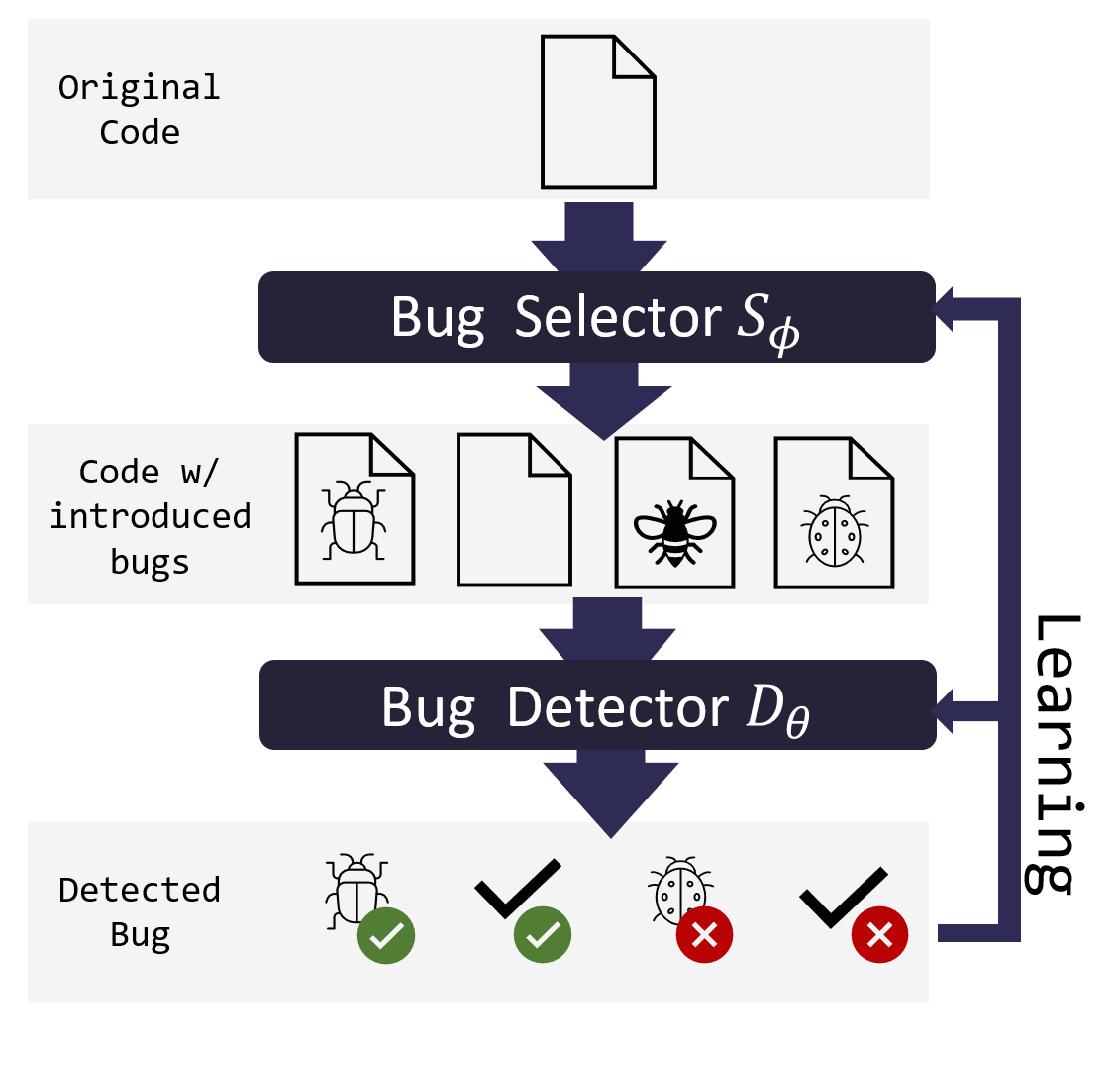 Self-Supervised Bug Detection and Repair. M. Allamanis, H. Jackson-Flux, M. Brockschmidt. NeurIPS 2021. TLDR: Learn to detect a variety of bugs in source code by asking two models to play a hide-and-seek game: one model inserts a bug, the other tries to find it. |