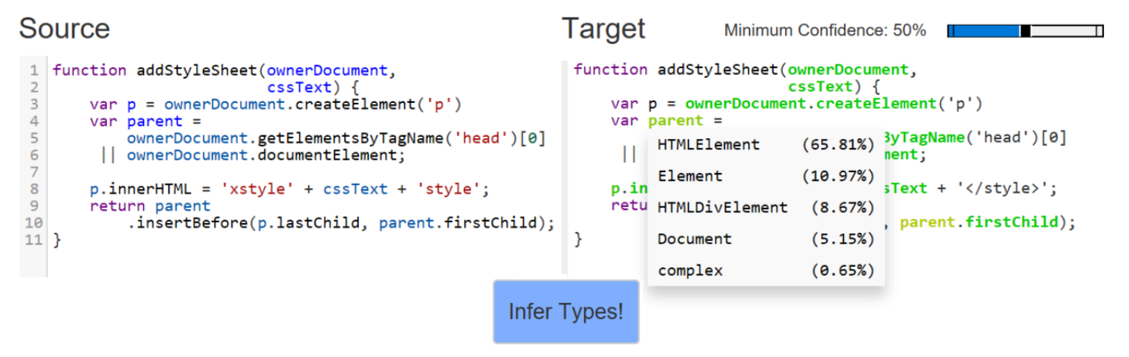 Deep Learning Type Inference. V. Hellendoorn, C. Bird, E. T. Barr, M. Allamanis. FSE 2018. TLDR: Sequence-based model to predict type annotations. |