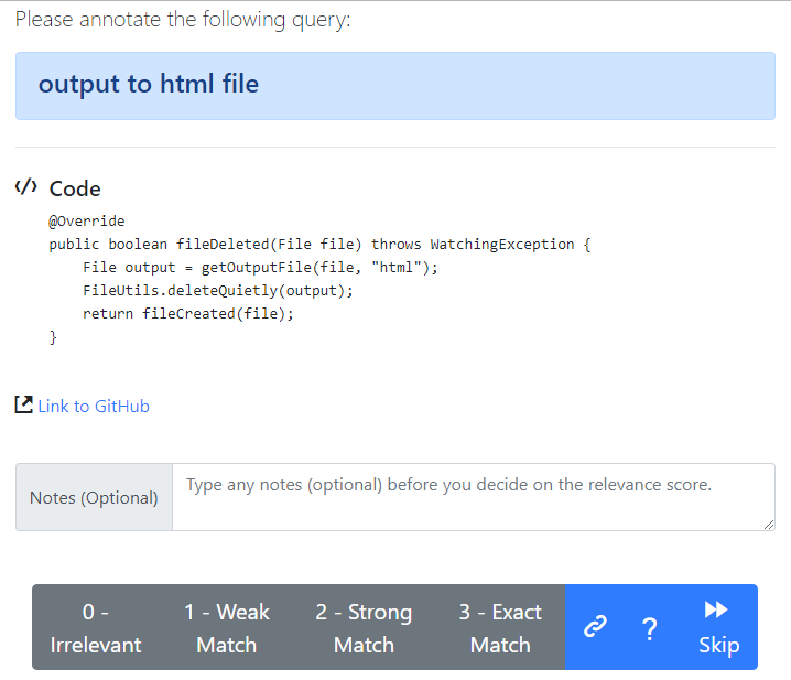 CodeSearchNet Challenge: Evaluating the State of Semantic Code Search. H. Husain, H. Wu, T. Gazit, M. Allamanis, M. Brockschmidt. 2019. TLDR: A benchmark for natural language code search using human-provided annotations. |