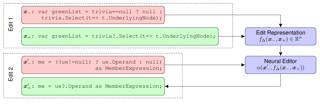 CODIT: Code Editing with Tree-Based Neural Models. S. Chakraborty, M. Allamanis, B. Ray. TSE 2020. TLDR: Model code edits with tree-to-tree neural networks. |
